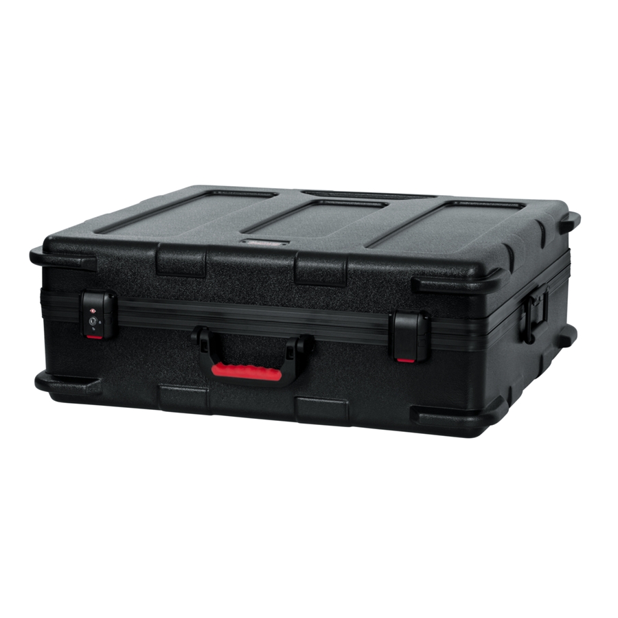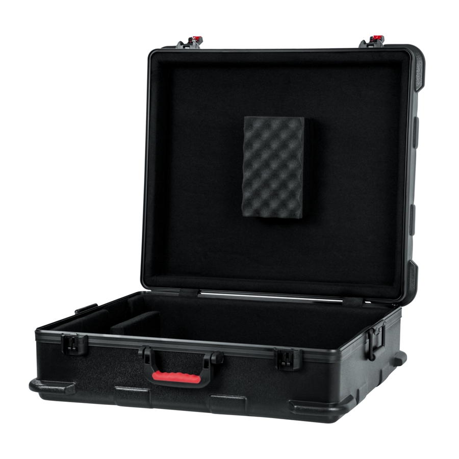 La GTSA-MIX222508 è una custodia per mixer progettata per i musicisti e i professionisti che hanno bisogno di una protezione elevata durante il trasporto, compresi i viaggi aerei. Infatti, le chiusure sono accettate dalla TSA e la costruzione in polietilene mantiene il mixer al sicuro. La maniglia ergonomica consente una presa salda. L'interno presenta dei cunei in schiuma che possono essere modellati per tenere saldamente in posizione il mixer.