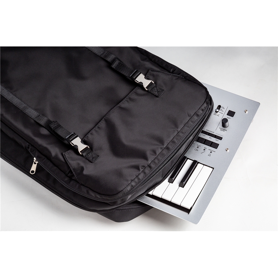 Lo zainetto dispone di 3 scomparti portaoggetti utili per vari scopi. Lo scomparto principale di maggiori dimensioni può ospitare un dispositivo portatile grande, come un sintetizzatore compatto, una scheda effetti o un controller DJ. Il secondo compartimento ha spazio sufficiente per un computer portatile da 17 pollici. All'interno sono presenti tasche Organizer che possono contenere uno smartphone, cavi o un portafoglio, in pratica tutti gli oggetti necessari quotidianamente. La tasca frontale possiede un fermaglio di protezione, ed è ideale per ospitare libri, riviste o spartiti. La spessa imbottitura protegge in modo sicuro l'attrezzatura e il computer. Una cintura a forma di "U" distribuisce uniformemente il peso dello zaino, mentre le aree della schiena e delle spalle impiegano materiale a rete per ammortizzarlo ed attenuarlo, permettendo così di trasportare con facilità attrezzature anche pesanti.