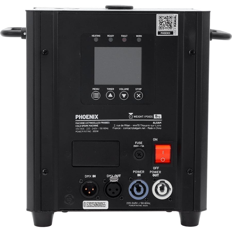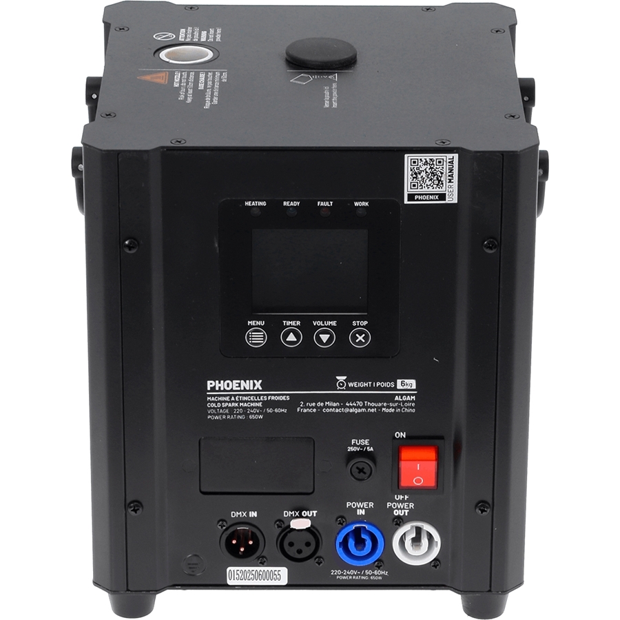 La Cold Spark Machine PHOENIX di Algam Lighting è un dispositivo versatile e sicuro, ideale per creare effetti visivi suggestivi in diverse occasioni. Con una potenza di 650 Watt e un breve tempo di pre-riscaldamento di soli 4 minuti, permette di proiettare effetti di luce fino a 5 metri di altezza, garantendo sicurezza grazie all'assenza di fumo, odori e rischi termici. È perfetta per eventi come concerti, matrimoni, cerimonie e feste di strada, offrendo un tocco di magia e atmosfera speciale ogni volta che viene attivata.