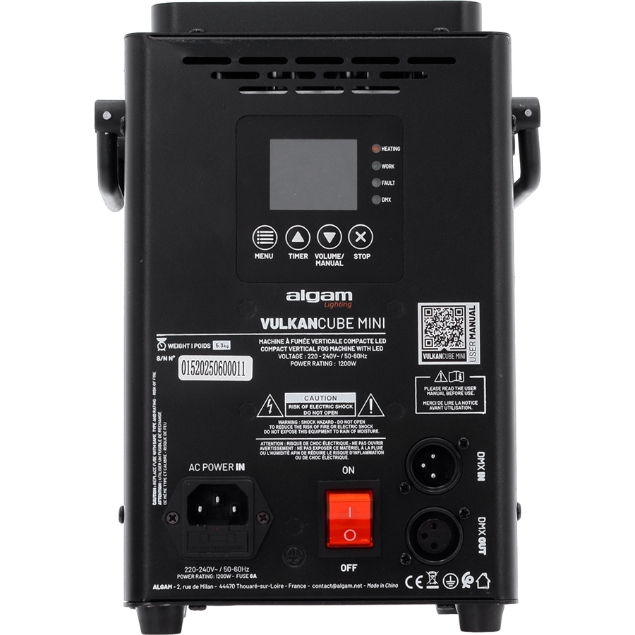 Specifiche Tecniche della Macchina del Fumo Verticale VULKAN CUBE MINI di Algam Lighting