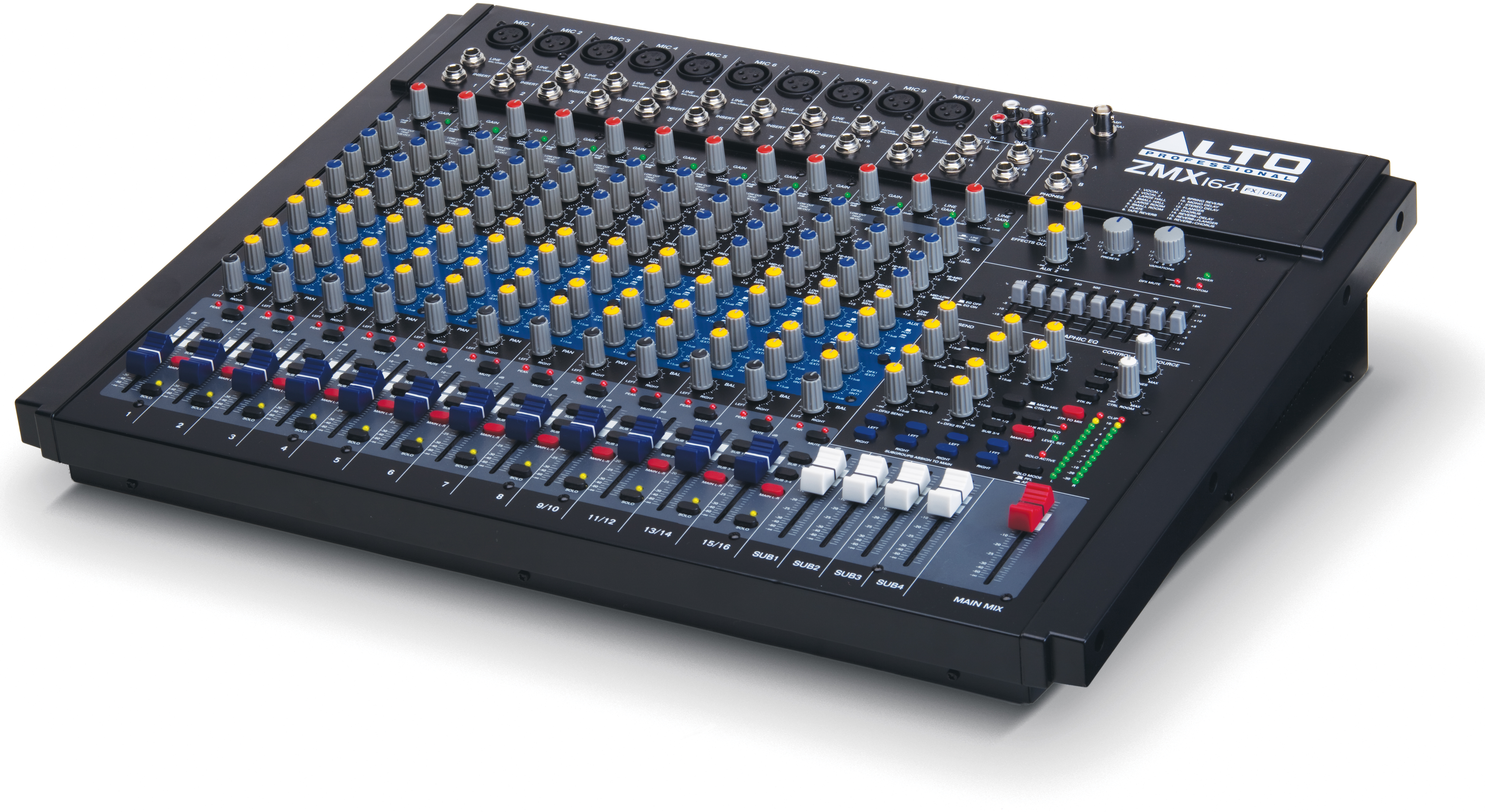 Mixer 12 canali (8 mono e 4 stereo), con 4 bus assegnabili, 8 ingressi mono mic/line (XLR/Jack ¼" TRS) con insert, eq 3 bande con medi sweep, eq 4 bande fisse sui canali stereo. I primi due canali stereo offrono un ingresso microfonico XLR, portando così a 10 gli ingressi microfonici disponibili in totale. Fader da 60mm ad alta precisione, 4 mandate Aux (2 con switch pre/post) per canale. ZMX164FXU dispone anche del multieffetto integrato a 256 preset, di un Eq grafico 9 bande sull'uscita Main, e della porta USB per il collegamento e il funzionamento come scheda audio ( 1 In/1 Out stereo) per computer Mac e PC.