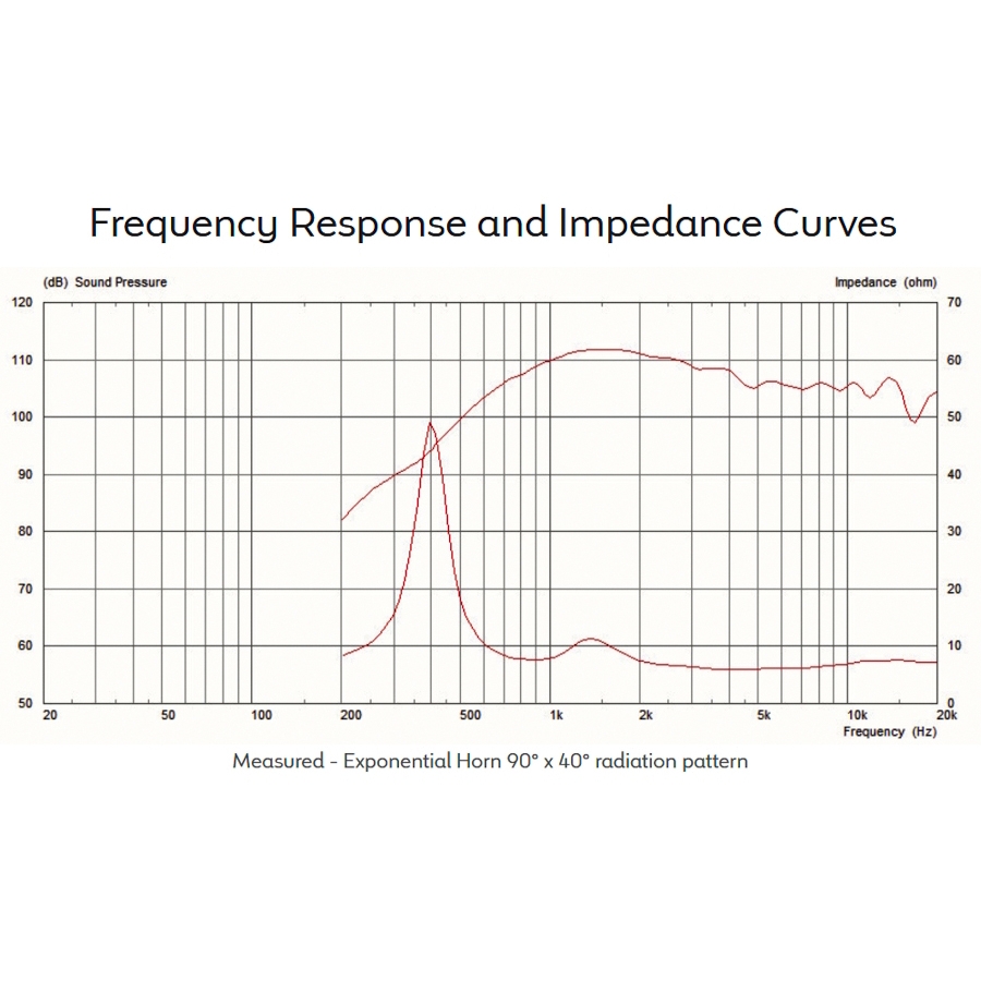 - Sensibilità: misurata sull'asse a 1 W, 1 m, utilizzando una tromba tipica, in ambiente anecoico 2π.