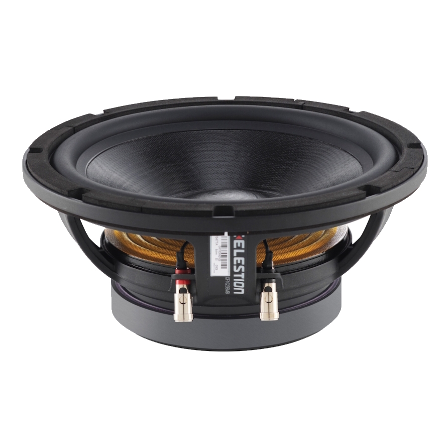 Celestion CF1025BMB è uno speaker con magnete in ferrite e telaio in alluminio pressofuso. Diametro 10", potenza nominale 300 Watt, impedenza 8 Ohm, bobina da 2.5" e sensibilità 92.5 dB.