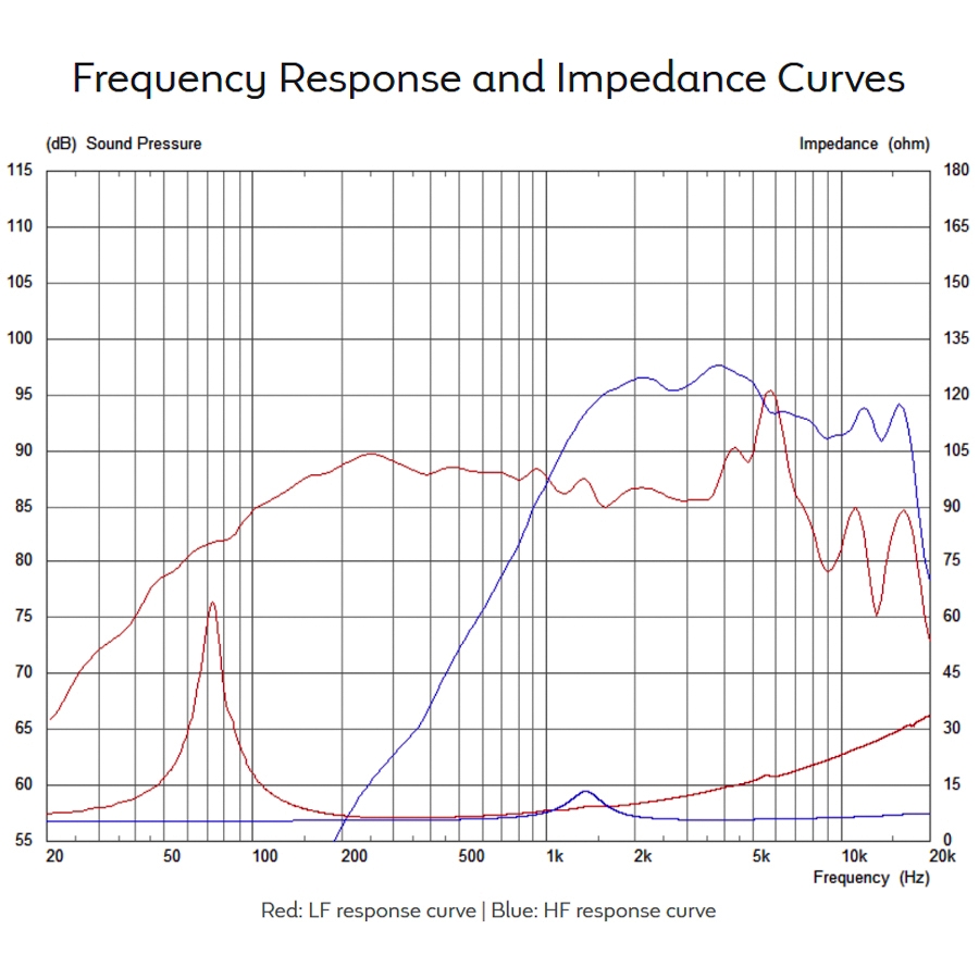 - Potenza calcolata sull'impedenza minima. Altoparlante testato in aria libera.