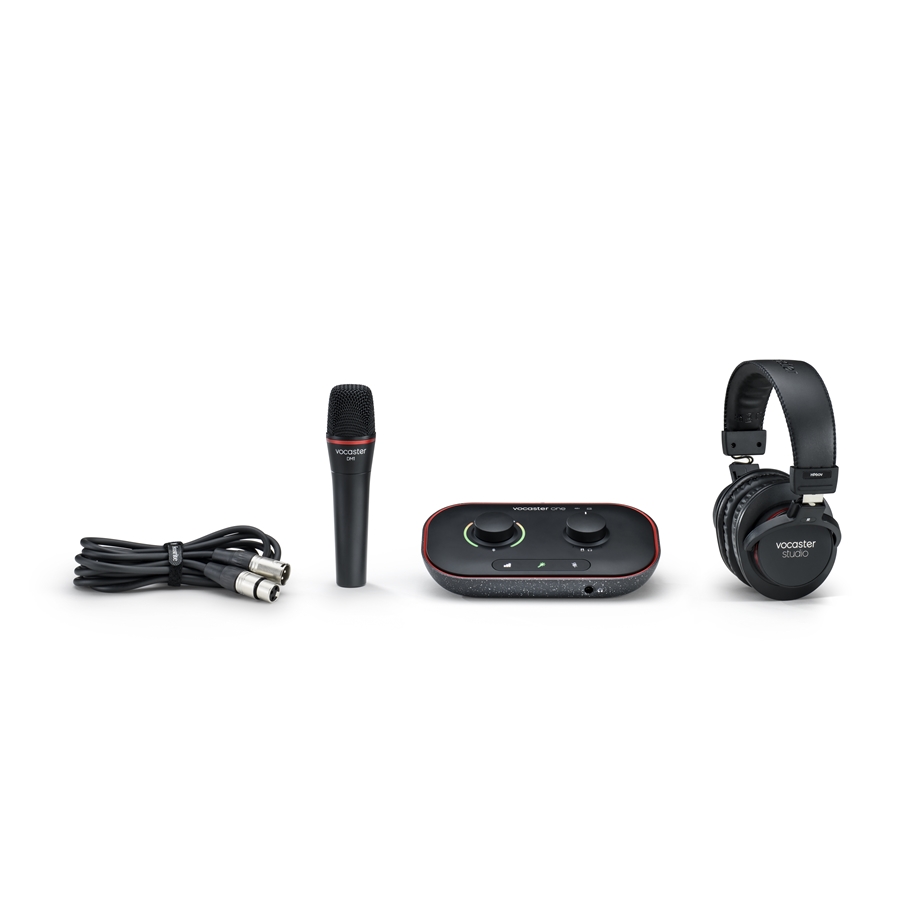 Vocaster One Studio è un bundle completo per il Podcasting nel quale sono inclusi l'interfaccia audio USB per PC, Mac e iPad Vocaster One, con un ingresso microfonico, connettore TRRS analogico per smartphone e tablet, uscita line stereo su Jack da 1/4" bilanciati, uscita cuffia e uscita TRS per il collegamento a telecamere (clicca qui per i dettagli), il microfono dinamico Vocaster DM1, la cuffia circumaurale Focusrite HP60v e i rispettivi cavi di collegamento.