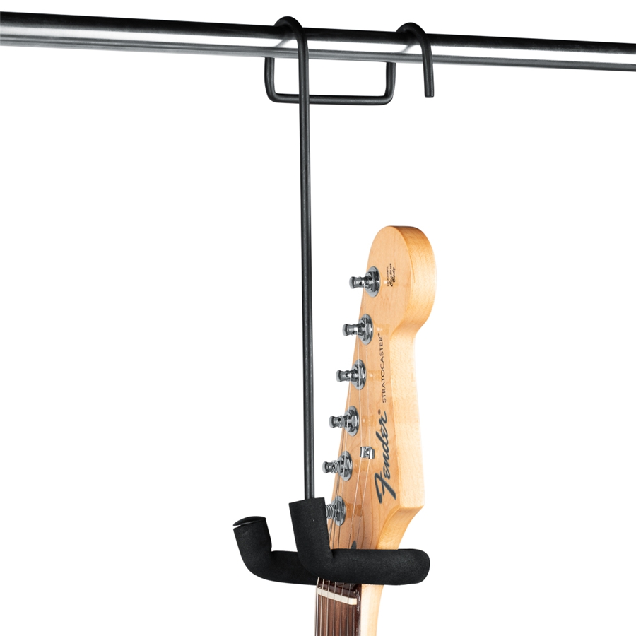 Supporto appendichitarra Gator per chitarre e bassi da appendere in armadio. Gancio a morsetto rivestito, struttura in acciaio, ideale per spazi ridotti.