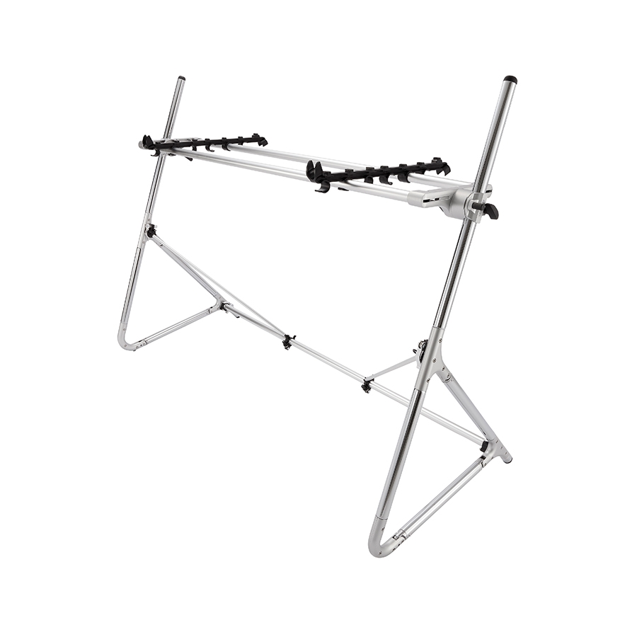 Sono inclusi due supporti per tastiera in polimeri, di eccellente robustezza. Regolando la loro posizione, è possibile sorreggere una grande varietà di tastiere ed altre apparecchiature dalle forme e dimensioni più disparate, come ad esempio piccoli sintetizzatori, Controller, mixer, ed è possibile diminuire la distanza tra i due supporti per ottenere un Set Up più compatto. Nella configurazione a due livelli dello Stand, è possibile inclinare indipendentemente i due supporti inferiore e superiore. In questo modo ognuno può assumere la posizione più consona alle proprie esigenze esecutive. I supporti inoltre possono essere inseriti tra i due tubi dei ripiani per facilitare il loro trasporto e stoccaggio.
